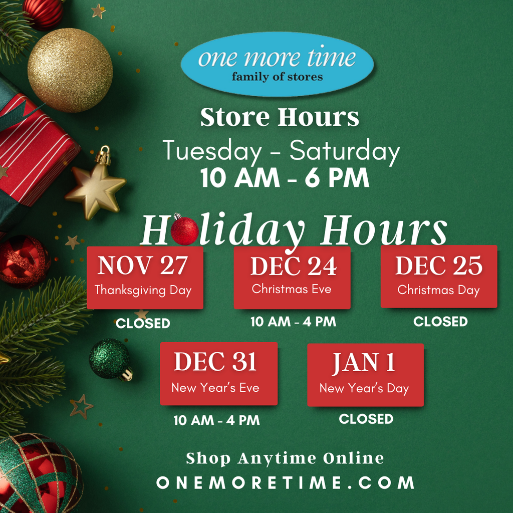 We make it easy to part with your less-loved clothes and accessories and turn them into cash. And once you clear out your closet, we can help you fill it back up with great new-to-you items at low prices. The best part of One More Time is our customer service and variety of clothing and accessories. We take pride in educating suppliers on how to recycle their items, PLUS we love helping our customers find quality items at a fraction of the original price. We receive new items every single day, so it's like a new store each time you shop with us - you never know what unique pieces you'll find at One More Time.