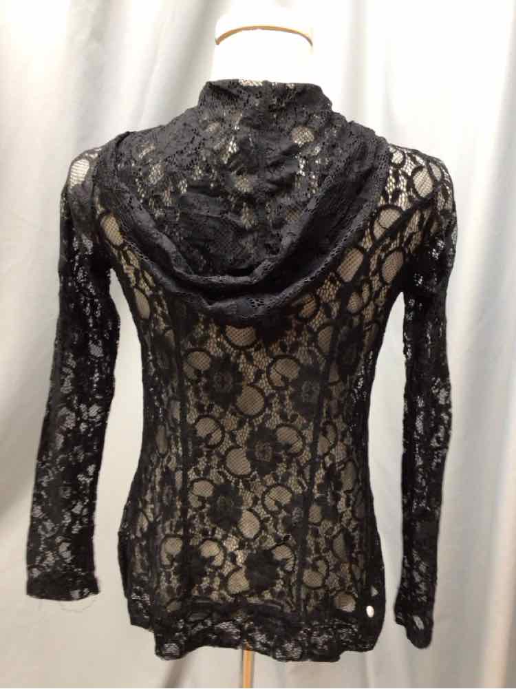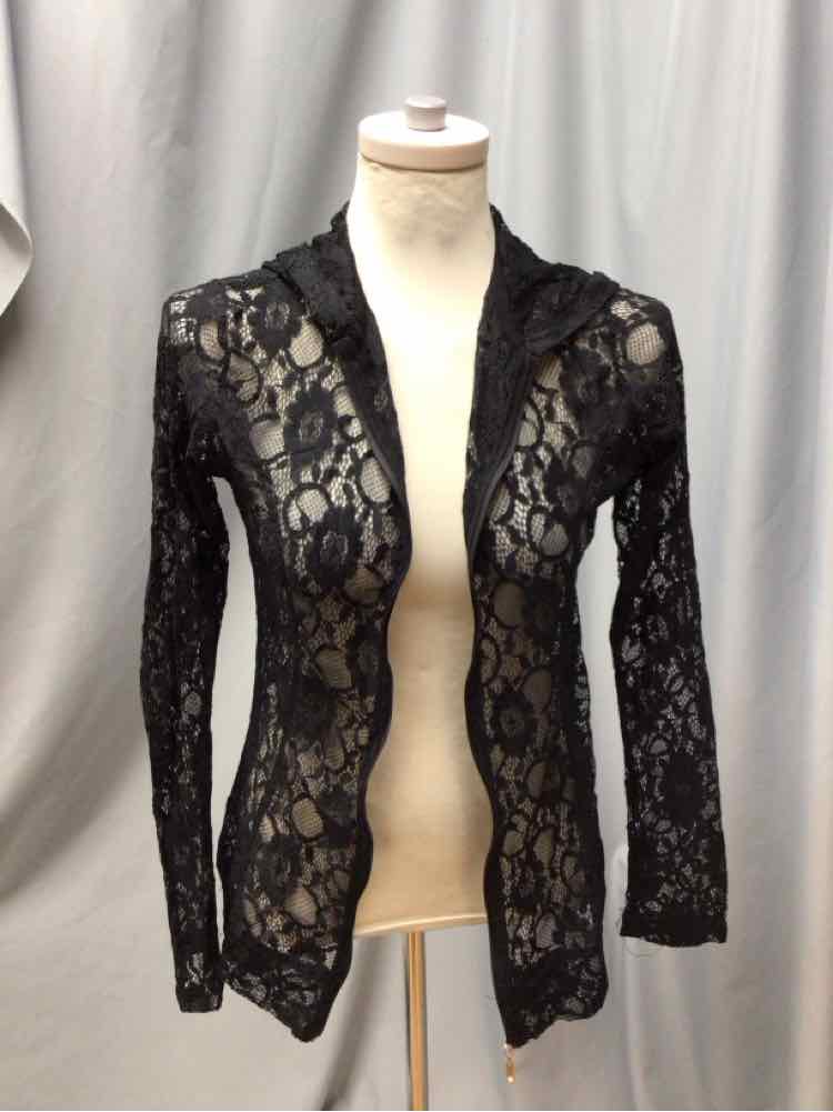 LS BLACK LACE ZIP FRONT HOODED
